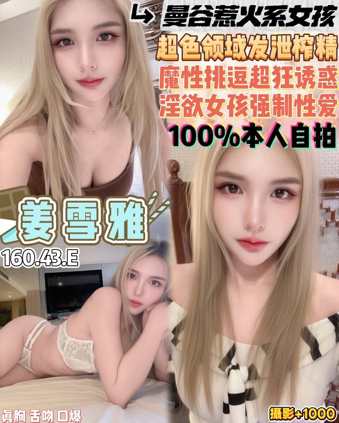 🔥曼谷完美九頭身 超誘人正值發情期 100%本人實拍 沒生過 真胸 淫亂挑弄 敏感露餡 強檔上市🔥