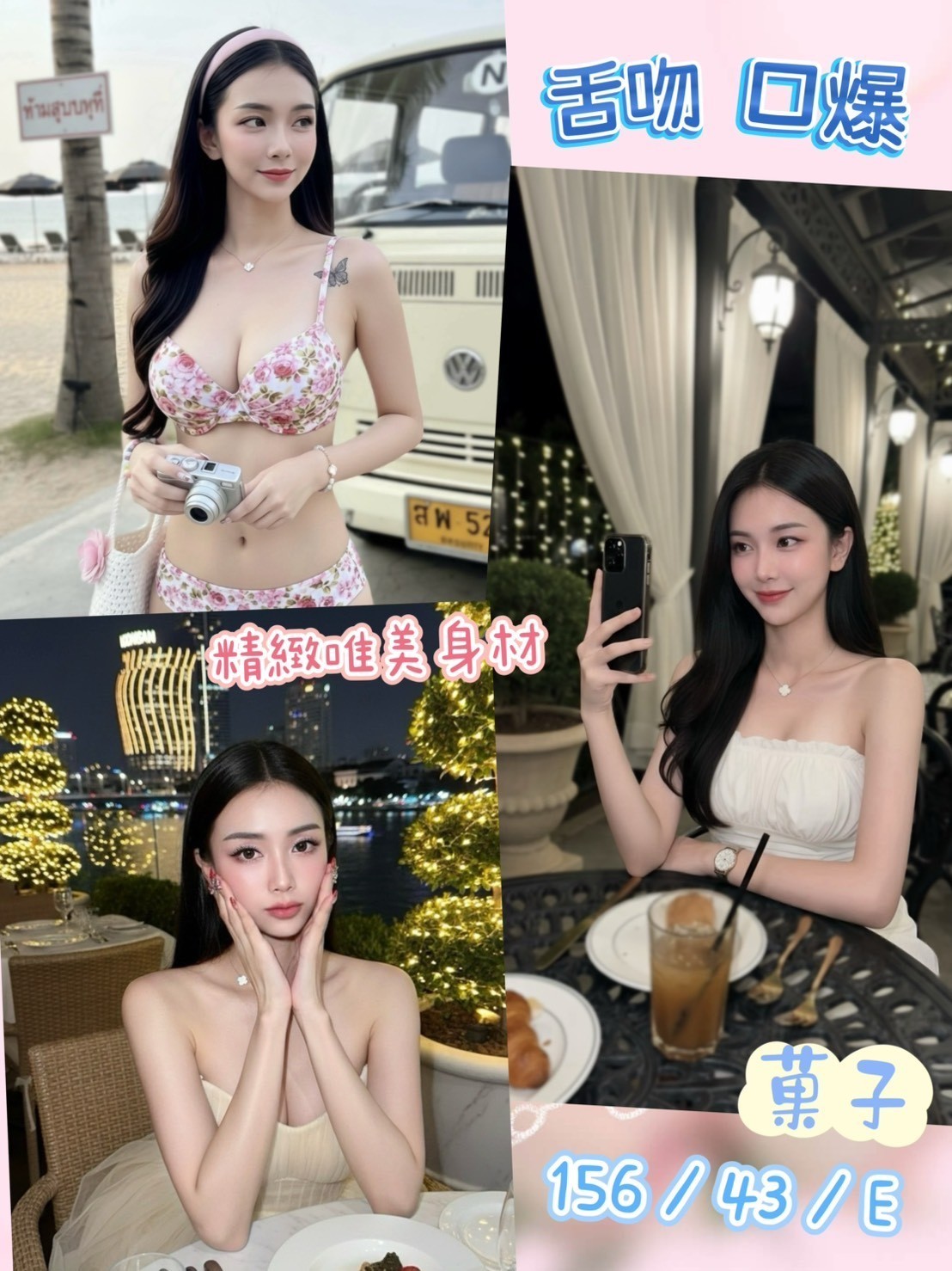 漫遊過水、無套吹、鴛鴦戲水、舌吻、親親、品鮑、69、 按摩、奶炮、奶推、屁推、舔蛋、穿絲襪(需自備)、角色扮演(需自備)