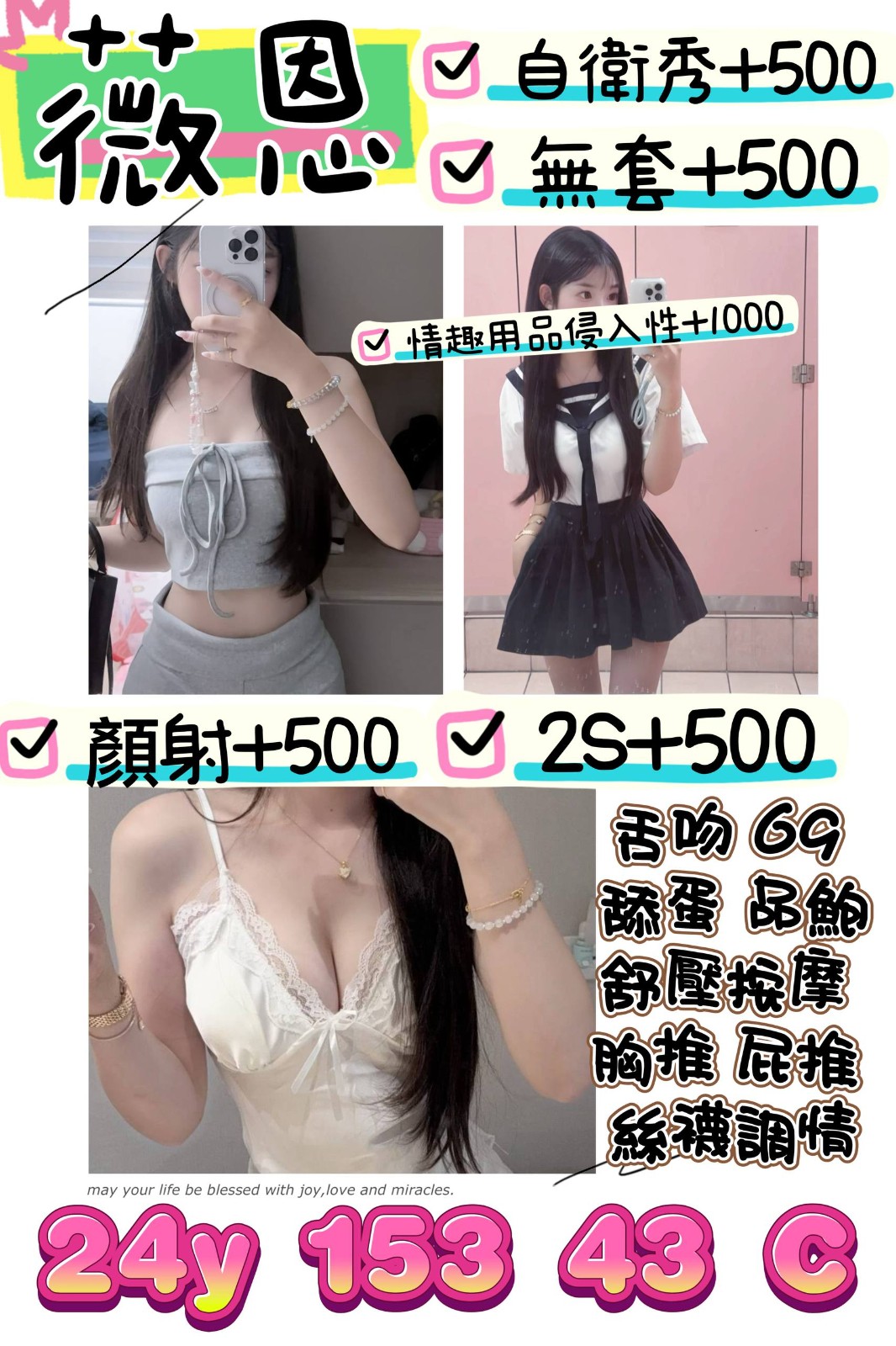 ❤️酥麻無套吹❤️ 胸推❤️ 舌吻❤️屁推❤️ 鴛鴦沐浴❤️角色扮演(服裝自備)❤️舒壓按摩❤️69❤️冰火❤️舔蛋